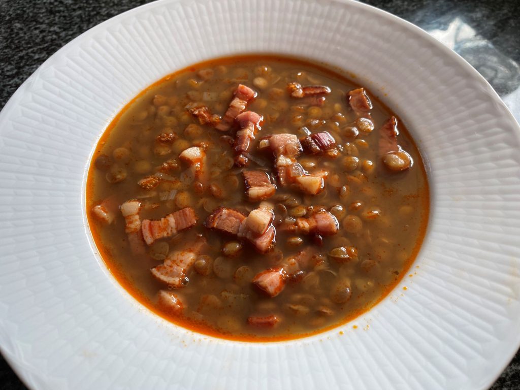 Det här är en personlig favorit bland soppor. Den är lik ärtsoppa med fläsk men här används gröna linser istället för ärtor.