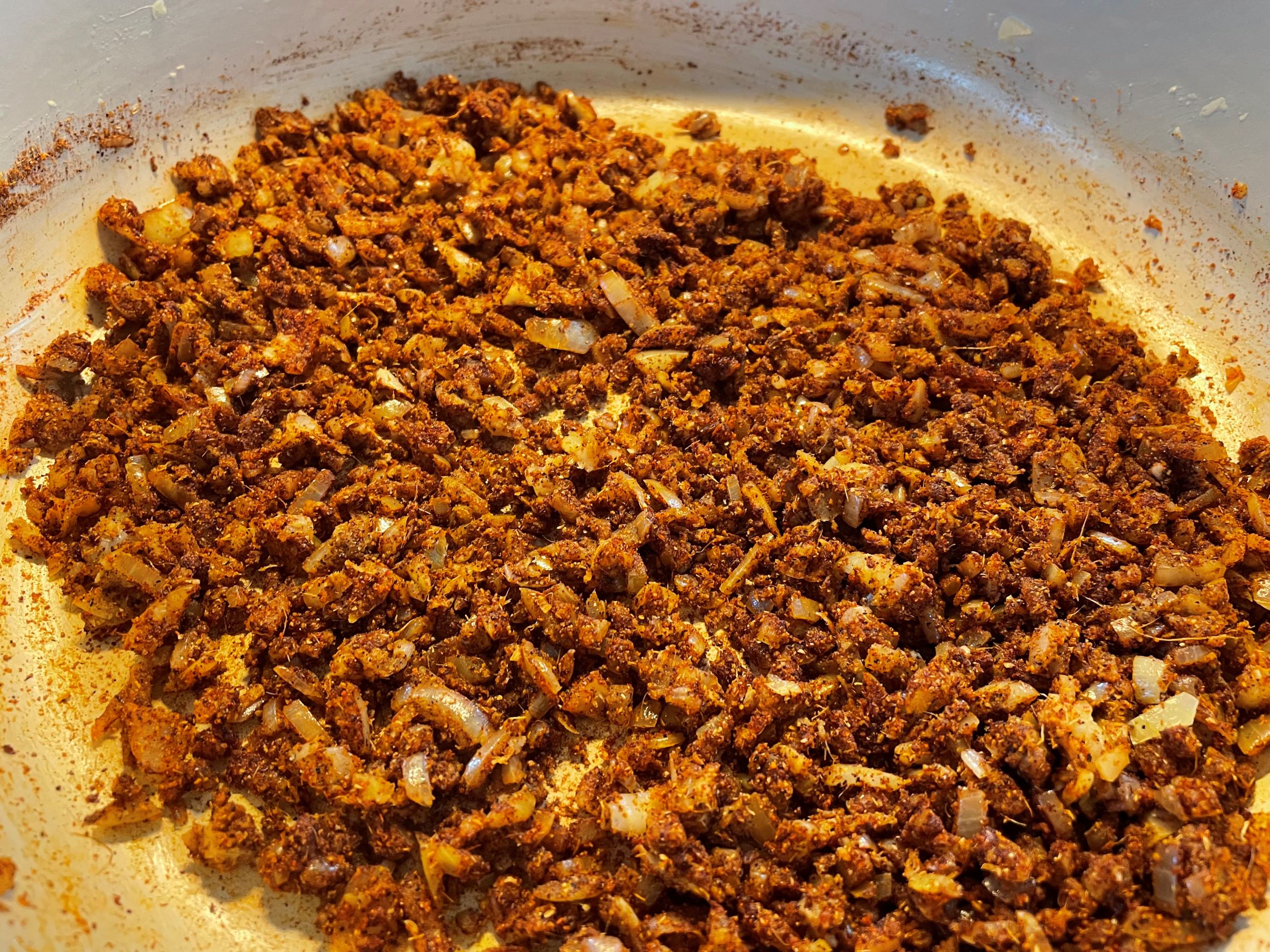 - Tillsätt tandoori- och garam masalakryddorna. Rör om och låt dem fräsa ihop med lökblandningen i ett par minuter under omrörning.
