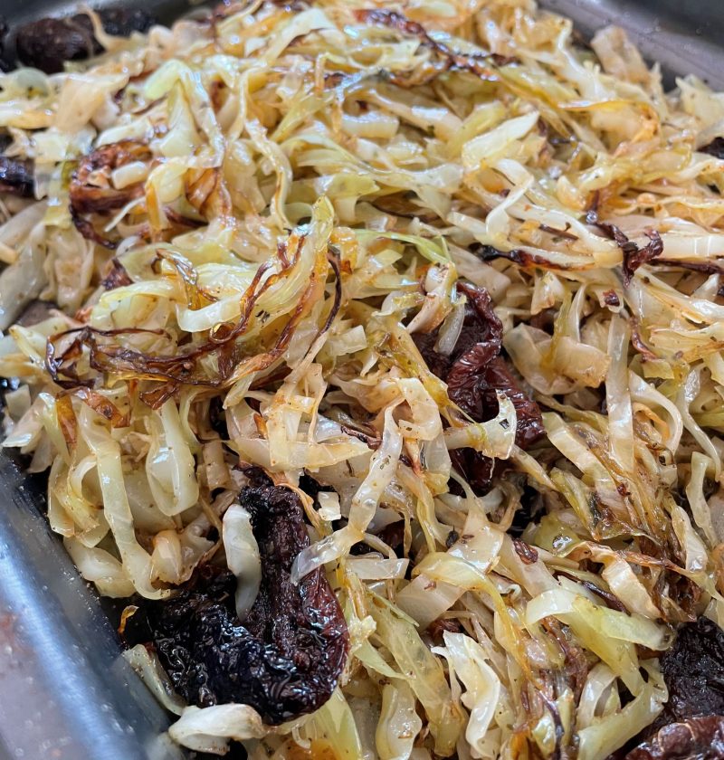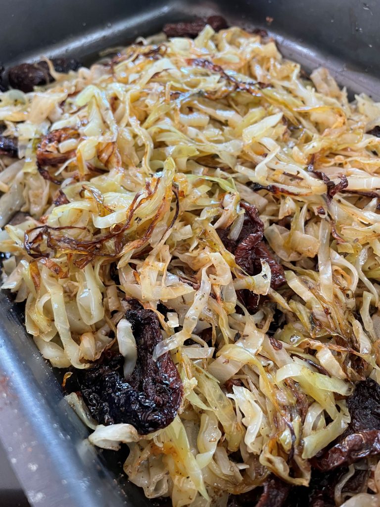 Ugnsbakad spetskål med smak av soltorkade tomater. Gott att servera till grillat kött och kryddstarka korvar.