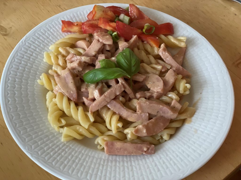 Krämig korv stroganoff med svampsmak