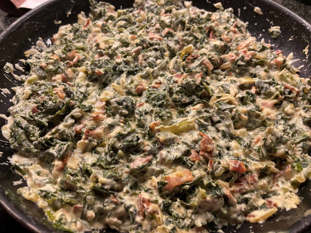 Gräddstuvad grönkål med knaperstekt bacon