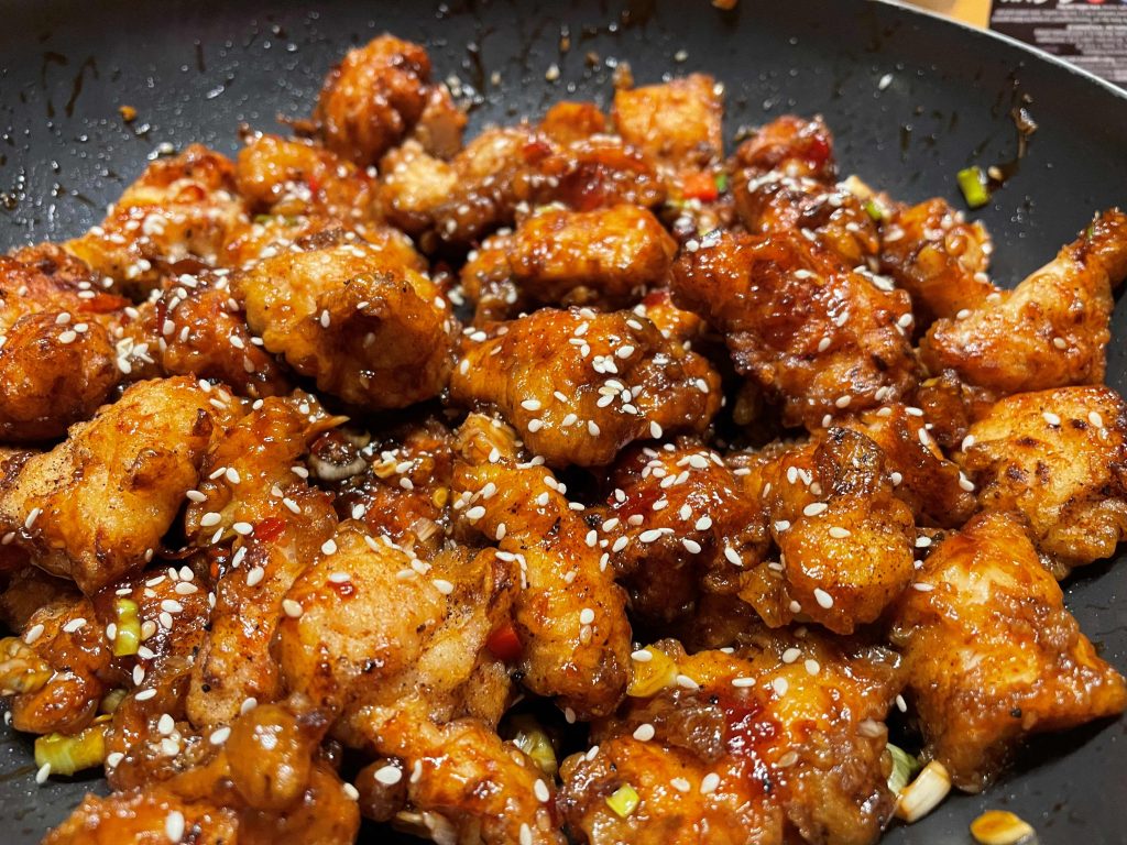 • Strö mer sesamfrön över kycklingbitarna om så önskas.