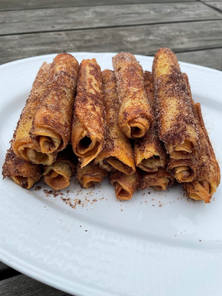 Trots det långa namnet tar rullarna inte lång tid att göra. Genom att använda färdigt briochebröd, exempelvis ICA Selections, och kavlar det så tunt som möjligt, får man snabbt en färdig ”degplatta” som man därefter brer en smör- och kanelsockerblandning på. Man rullar det utkavlade bricochebrödet till rullar som blir ca 8-10 cm långa. Dessa steks i stekpanna och därefter rullas i en kanelsockerblandning. Färdigt! Fantastiskt goda och enkla att göra.