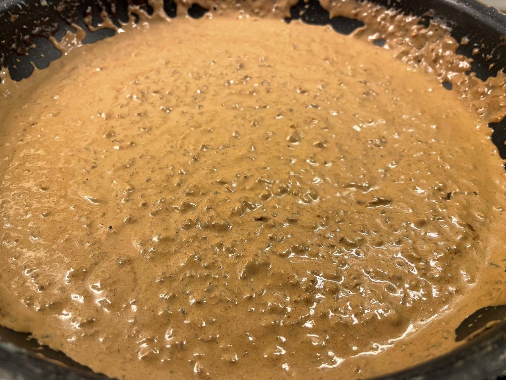 - Tillsätt eventuellt någon tesked med colorit för lite mörkare nyans på såsen.