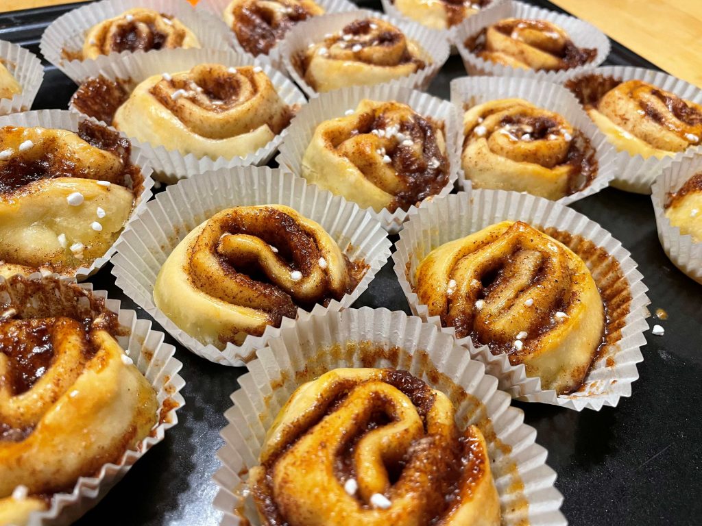 - Lägg bullarna i bullformar och pensla dem med uppvispat ägg. Toppa med pärlsocker.