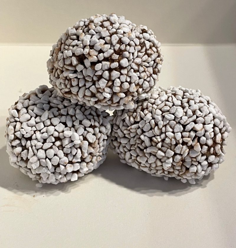 Goda chokladbollar som kan smaksättas med kaffe, rom eller cognac. Mängden sprit får man själv avgöra vad som är lämpligt. Ett alkoholfritt alternativ är att använda romextrakt. De kan rullas i kokosflingor (gärna rostade), pärlsocker eller färgglatt strössel.