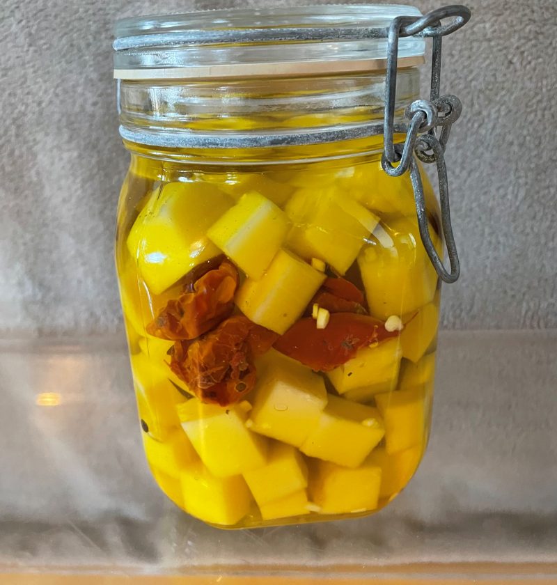 Jag är förtjust i olika typer av inläggningar. I det här fallet rör det sig om inlagd ost. Den är god till alltifrån en grillad köttbit till en plats på julbuffén. Välj en hård och smakrik ost. Jag har valt en Grana Padano. Eftersom det är en italiensk ostsort väljer jag att tillsätta olivolja, vitlök, …